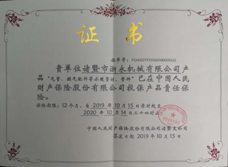 公司產(chǎn)品保險(xiǎn)證書(shū)